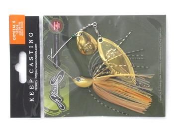 釣れるスピナーベイトの名を不動のものとしたオリジナル「クリスタルS」“V”ブレードのアクションをロスなくヘッドへ伝えるファインワイヤーと、ナチュラルウェーブするプロファインスカートの組み合わせで強力なバイブレーションを生み出し、トータルバランスでバスにアピール。